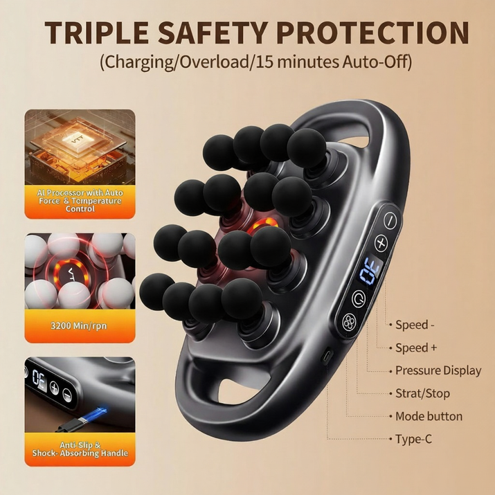 🌀 16 Massage Heads — powerful deep-tissue kneading for full coverage